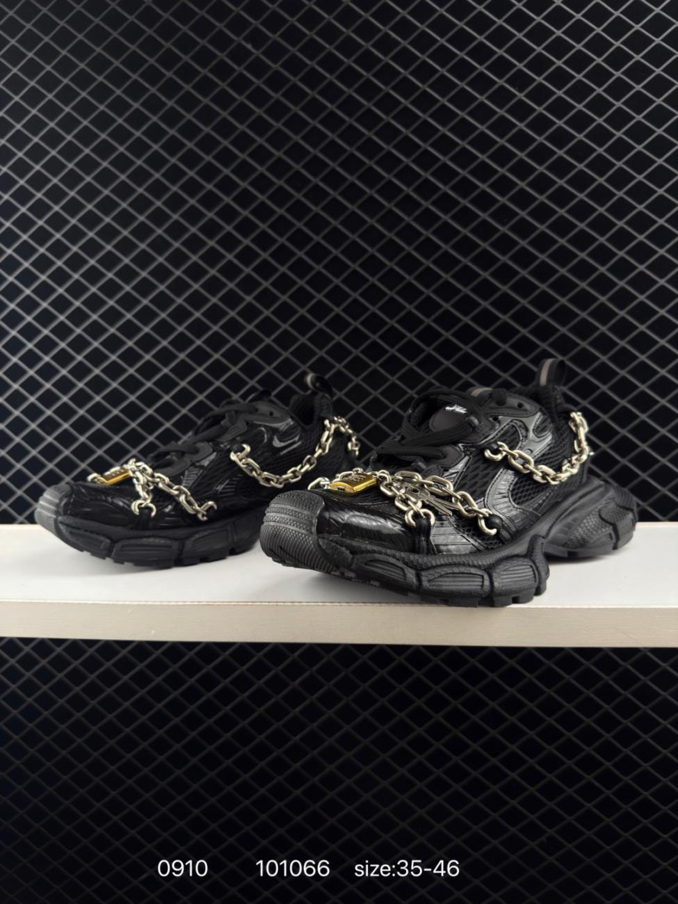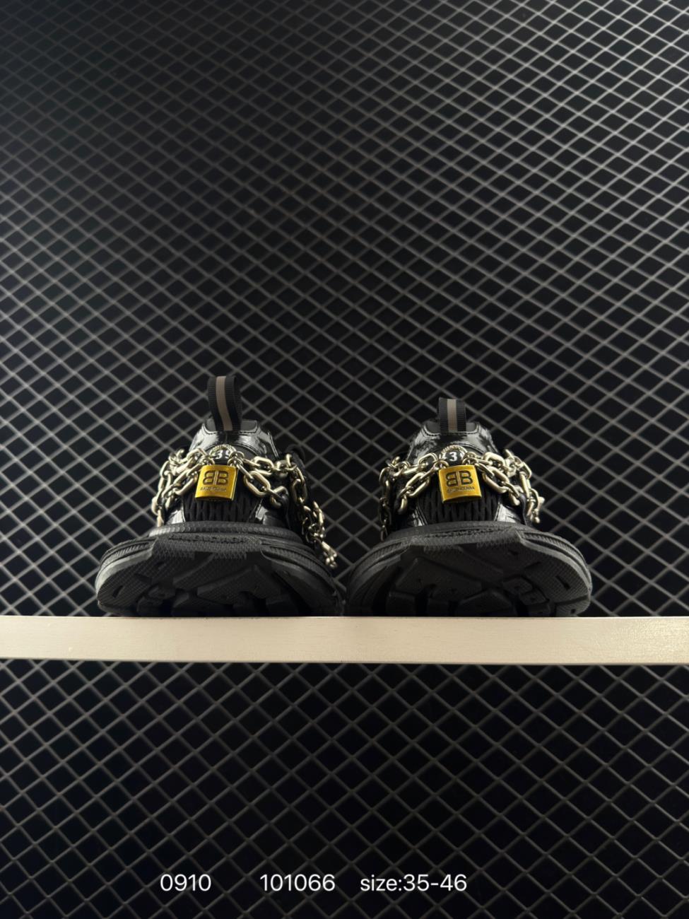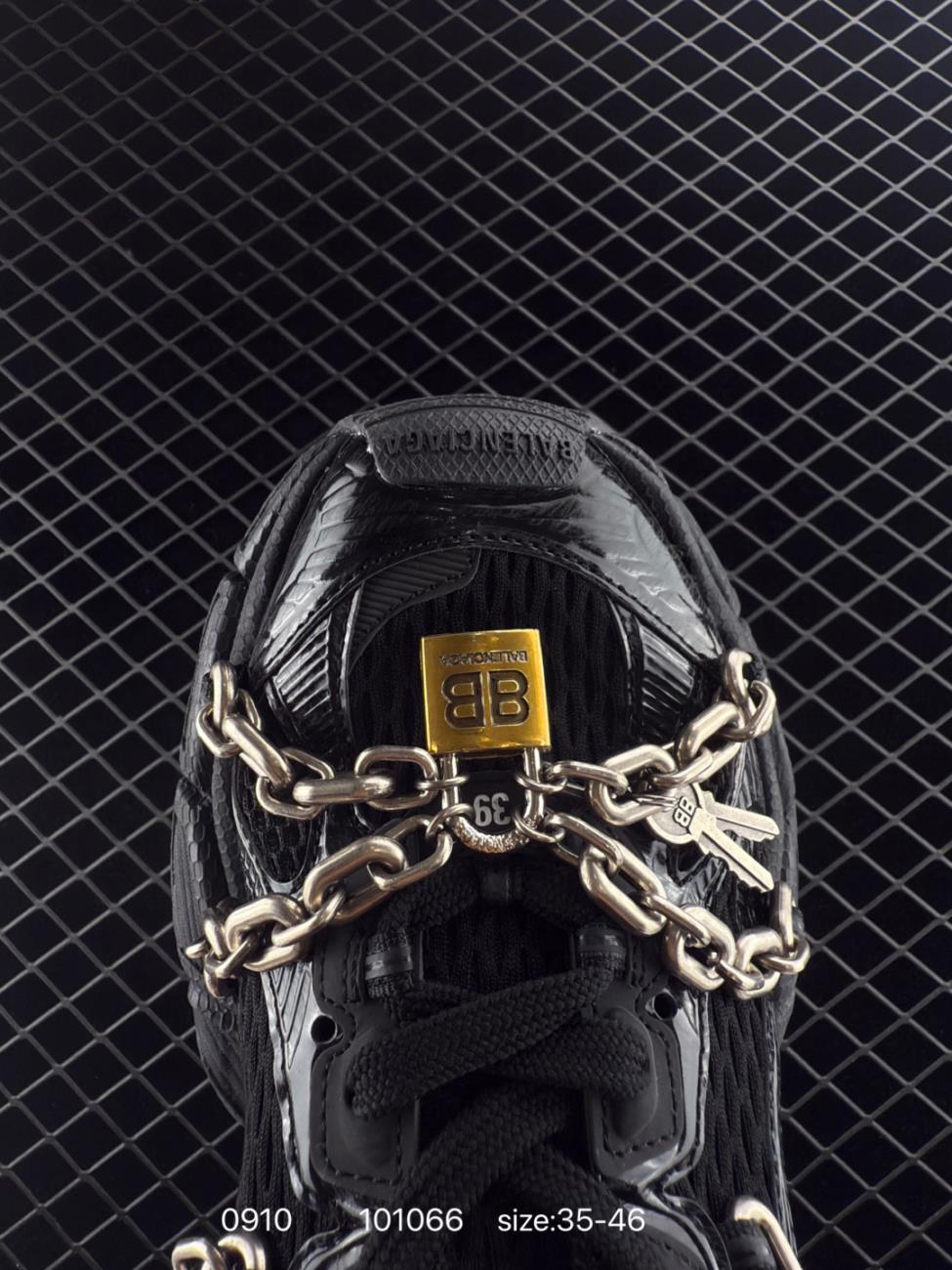 Balenciaga 3XL chain padlock decoration round toe tie low top dad shoes men black 341282 7420 Shoes Sneakers Famous
