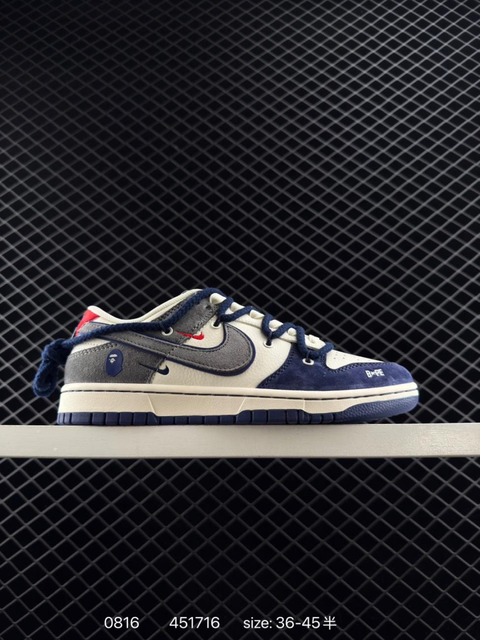 NIKE SB Dunk Low BAPE Co branded Strap Color blocked Gray Hook Anniversary High end Customization Low top Casua Your Own Shoes Sneakers